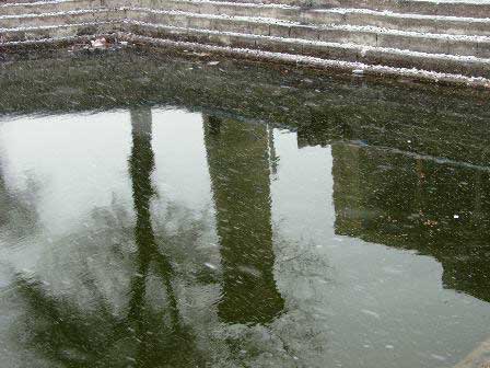 モスクと水をたたえる池と小さなミナレットが一つの場所に集まっている。 (2007年1月撮影)