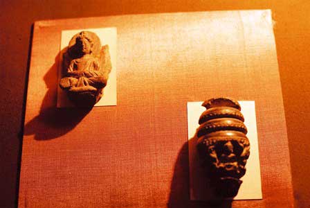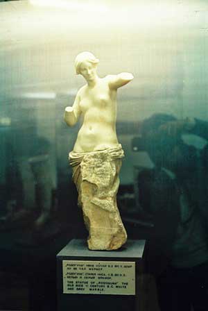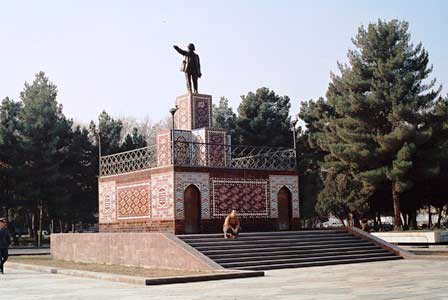 トルクメニスタンの首都。市の中心部の広場にいるレーニンは民族色豊かな敷物の上に立っていた。下の写真は、市内の博物館に陳列されているこのあたりの遺跡からの出土品。ヴィーナス像があるかと思えば仏像もあり、このあたりは東西の文物の行き交う文明の十字路だったことがじゅうぶんうかがえる。 (1991年12月撮影)