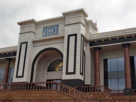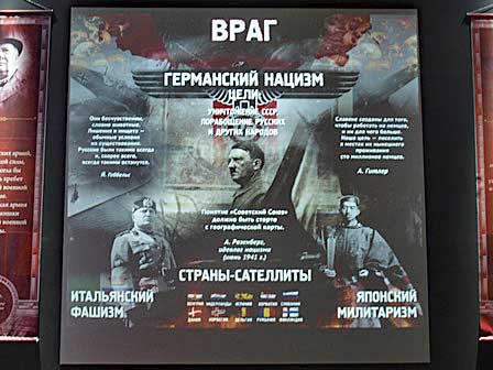 おそらく上の「勝利の広場」の関連施設だろう。さきの大戦に関する歴史博物館。誰と誰が手を結んで世界の人々の敵となったか、明瞭に示されていた。 (2019年8月撮影)