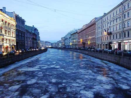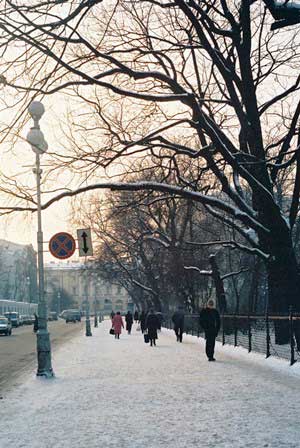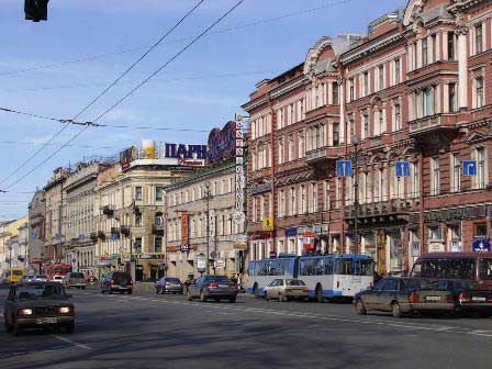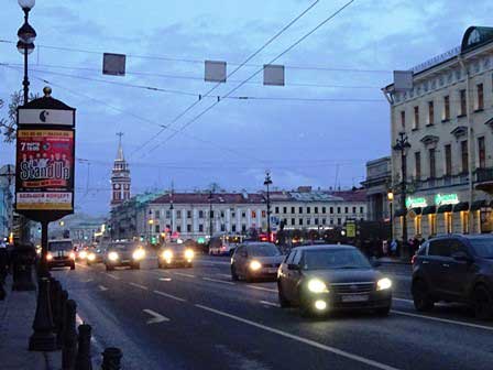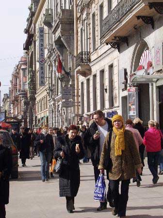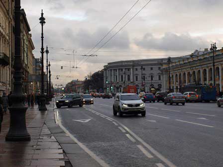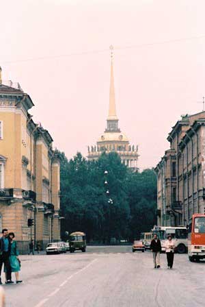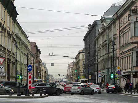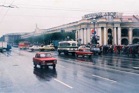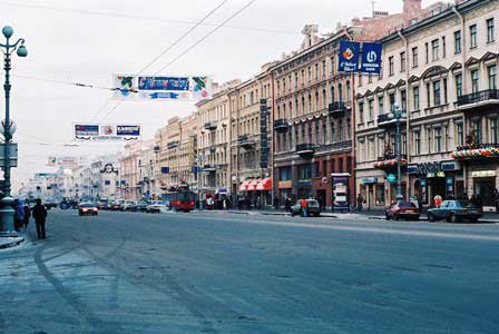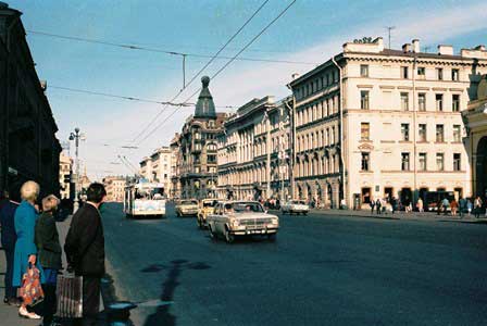 アレクサンドル・ネフスキー修道院から旧海軍省まで、ほぼ東西方向に一直線に伸びる大通り。帝政時代からペテルブルク一番の繁華街だが、通りに面した建物には厳しい高さ制限があって、通りは今でも帝制時代の面影さえ感じさせる雰囲気である。 (1段目及び3段目右:1984年8月,2段目左:1985年8月,同右と3段目左:1996年12月,4段目左:2016年12月,同右:2017年1月撮影)