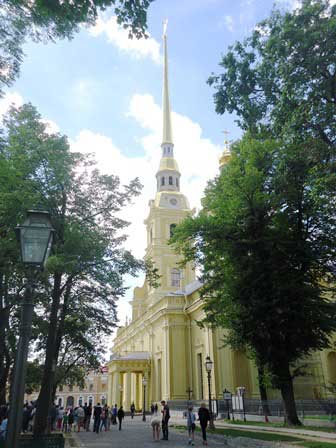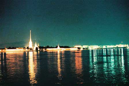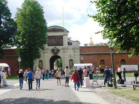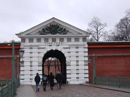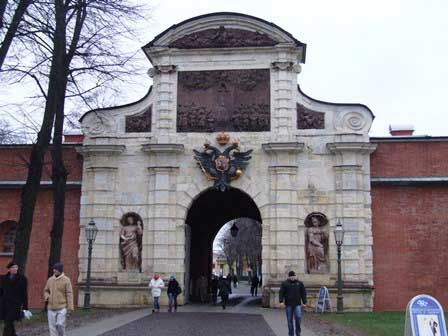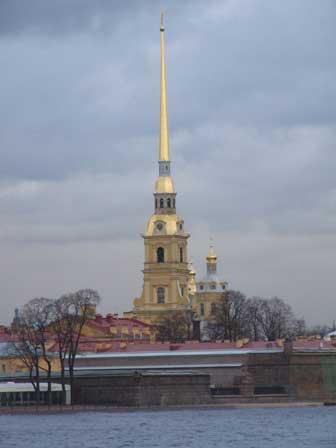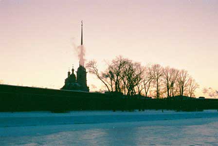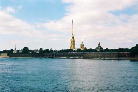 ネヴァ川をはさんで冬宮のほぼ対岸に位置するのがペトロ・パブロフスク要塞。もともとはスウェーデン軍に対する防衛拠点として構想されたが、すぐに要塞としての意義を失い、むしろ政治犯等を収容する監獄として知られ、恐れられた。中央の尖塔はペトロ・パブロフスク寺院。ロマノフ朝の歴代皇帝の墓もこの寺院の中にある。要塞の敷地内に造幣局もある。また、今でも毎日正午に時を告げる大砲が撃たれる。 (1段目左:1995年8月,同中:1987年12月,同右:1984年8月,2段目左:1985年12月,同右:2011年12月,3段目左右:2011年12月,4,5段目:2013年8月撮影)