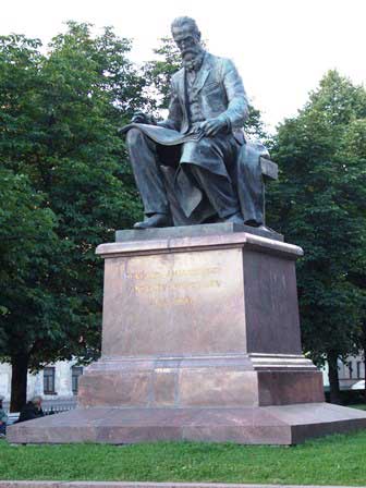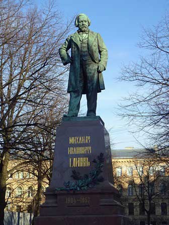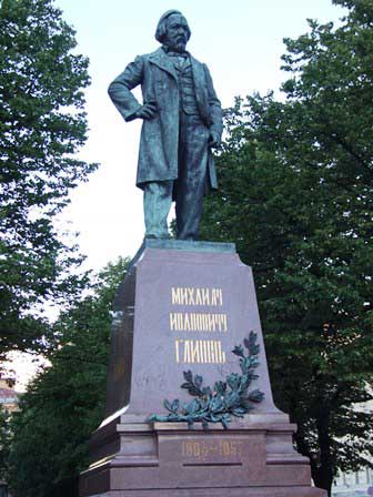 | 作曲家リムスキー・コルサコフ(左)とグリンカ(右)の像。 いずれも、高等音楽院のすぐ近くにある。 (右端のみ2020年2月,その他:2013年8月撮影) |  |  |