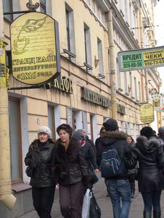 19世紀にA.S.プーシキンらも立ち寄ったと言われるレストランがネフスキー通りに再建され、営業している。 (2011年12月撮影) 前のページへ 次のページへ 目次へ戻る
