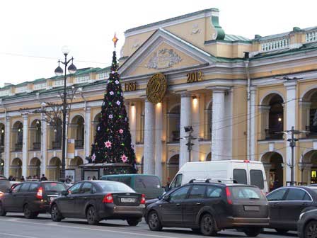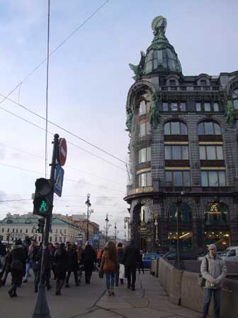 やはり、ネフスキー通りの中心部にソ連時代からある書店。元はアメリカの有名なミシン会社「シンガー」のロシア支社の建物だったそうだ。 (2011年12月撮影) 前のページへ 次のページへ 目次へ戻る