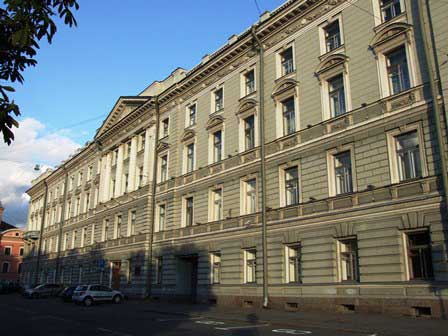 モスクワ音楽院の創設に先立つこと4年前に設立された伝統ある音楽学校。マリインスキー劇場から通りを隔てて向かい側にある。 (2013年8月撮影)