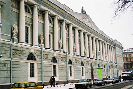 モスクワに対抗意識ということで言えば、このシチェドリン図書館もキーロフ劇場に劣らない。係員の説明によると「ここにはロシアのすべての本が集められていて、モスクワのレーニン図書館(当時)にないものもある。」とか。蔵書の中にグーテンベルグの聖書もあると聞いたような記憶もあるのだが、もう10年も前のことで定かではない。 (1997年12月撮影)