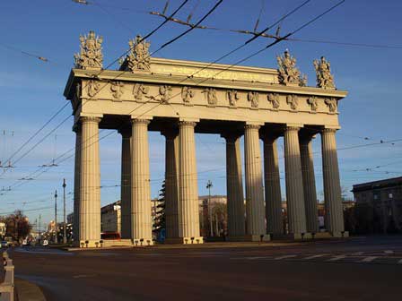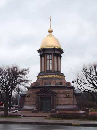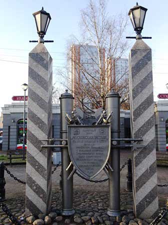 モスクワ凱旋門のすぐ近くにある記念碑。モスクワ大通りはそのままモスクワへ向かう街道につながるから、このあたりに関所を設けたということなのだろう。 (2017年1月撮影)
