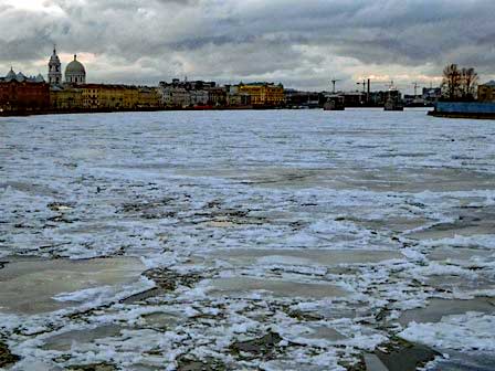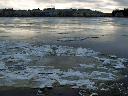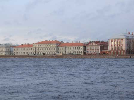 ネヴァ川に面したワシーリー島の岸辺。 (2011年12月撮影) 前のページへ 次のページへ 目次へ戻る