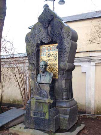 やはりアレクサンドル・ネフスキー修道院の境内のチフヴィン墓地にあるムソルグスキーとボロディンの墓。右側がムソルグスキー、左側のがボロディン。ボロディンの背面の楽譜は歌劇「イーゴリ公」の中の「ダッタン人の踊り」。 (左:1985年8月,中及び右:2017年1月撮影)