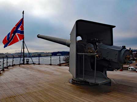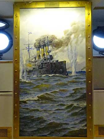 この巡洋艦“オーロラ”は対馬沖海戦(日本海海戦)にも加わって撃沈を免れた数少ないロシア艦艇の一つ。
