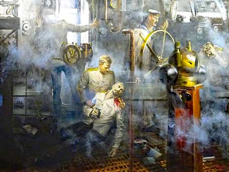れている。ソ連時代にも艦内の資料室には日本海軍からの被弾の写真が展示されていたが、最近訪れた時の印象ではこの日本海海戦