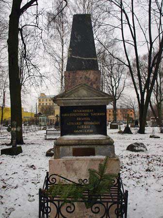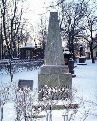 農奴制批判の主著『ペテルブルクからモスクワへの旅』で知られる18世紀の思想家A.N.ラジーシチェフの墓。 (2020年2月撮影)