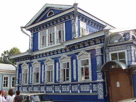 ボルガ河沿いの町、ゴロジェッツの街中で見た建物。べつだん博物館仕立てにしているわけではないが、通りにはこうした綺麗な建物がいくつもある。 (2007年8月撮影)