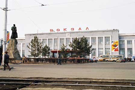 シベリア鉄道の終点となるウラジオストク駅の正面。 (2001年3月撮影)