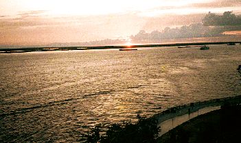 極東の大河アムールはハバロフスク近くでウスリー川を飲み込み一層大きくなる。まだ中流だというのに向こう岸まで何千メートルもの幅があり、その川のさらに向こうに沈んで行く太陽を見ていると大陸に来たのだという実感がわく。 (1984年8月撮影)