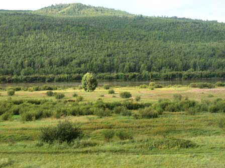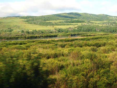 | ハバロフスクからイルクーツクに向かう鉄道の沿線は、はじめに想像していたような鬱蒼としたタイガ地帯ではなく、どちらかというと草原状になっているところが多い。写真は、いずれも、走行している列車の車窓から撮ったもの。 (上段:1984年4月,中下段:2013年8月撮影)