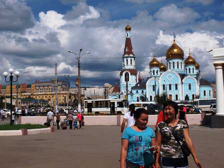 チタ州の州都。ホームから街を覗いてみると、大都会だということがよくわかる。 (2013年8月撮影)