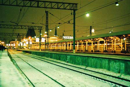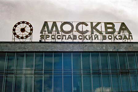 ロシアではモスクワなどターミナル駅がいくつもあるような大都市では、駅の名前はその列車の行き先でよばれる。(小さい都市では「駅」と言えば一つしかないから名前を言う必要がない。)レニングラード行きの列車が出るのがレニングラード駅、キエフ行きの出るのがキエフ駅、..という具合。だから、モスクワ駅はモスクワ市にはなく、サンクト・ぺテルブルクにその名のついた大きな駅がある。そういうわけでシベリア鉄道でモスクワへ向かう列車の終着駅はモスクワ駅ではない。ヤロスラヴリ駅だ。おそらくモスクワからこの方面への最初の鉄道がヤロスラヴリまで敷かれたのであろう。 (1990年8月撮影)