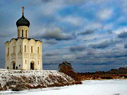 ニジニ・ノヴゴロド方面からモスクワに向かう急行列車がウラジーミルに到着する前にボゴリューボヴォという小さな町の駅を通過する。左の写真は、その駅に達する直前に列車が渡るネルリ川の鉄橋。この鉄橋の向こうには「ネルリの白鳥」の名で知られる美しいポクロフ教会(右の写真)がある。 (2014年12月撮影)