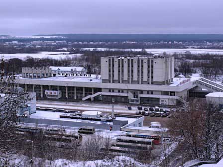 現在では、急行ロシア号はヤロスラヴリやセルギエフ・パッサートを通らず、ニジニ・ノブゴロドを経てウラジーミルを通るルートでモスクワ・ヤロスラヴリ駅に向かう。左の写真は、市の小高い丘の上から見たウラジーミル旅客駅。むこうを流れるのはクリャジマ川。下段は、もっと駅に近づいて撮ったもの。 (上:1990年8月,下:2014年12月撮影)