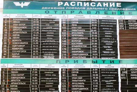 ところで、そのヤロスラヴリ駅に掲げられた下の時刻表をご覧になって気づかれました?日本なら必ず時刻順にならべるところをここでは列車番号順!どちらが合理的でお客に対してサービスがいいのかは難しいところだが。 (上:2000年1月,下:1997年8月撮影)