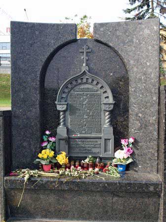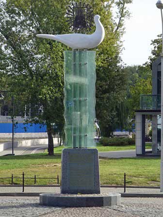 スヴィスラチ川のトロエツカヤ旧市街区付近のごく小さな島に立つ慰霊碑。見ていると、ベラルーシの若者がアフガニスタンなどで死ななければならなかったのは何故かと問いかけてくるような気がする。 (2000年12月撮影)