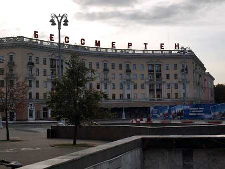 旧ソ連邦構成共和国15の中で、ここベラルーシほど戦争の惨禍の大きかった国は他に無いであろう。1941年6月の独軍侵攻直後にほぼ全土が占領下に置かれ、逆にソ連軍の反攻が始まっても、ソ連領内で最後まで戦場になったのがこのベラルーシだ。右の写真は、勝利の広場にある戦没兵士を偲ぶオベリスク。 (左及び中:2019年9月,右:2001年1月撮影)