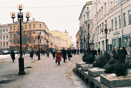 モスクワで最初の「歩行者天国」になったアルバート通り。「歩行者天国」になってまもない頃の風景。 (1985年12月撮影)
