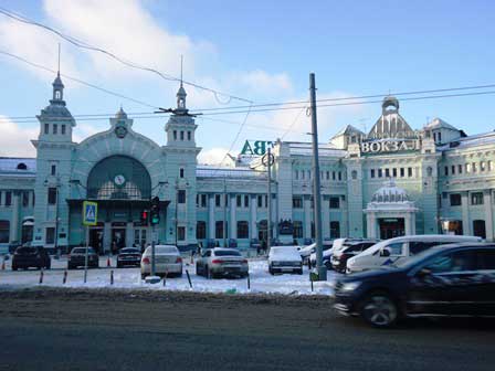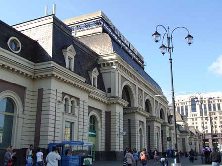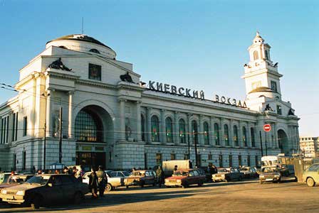 当然のことながら国鉄のターミナル駅もモスクワにはいくつもあるが、その中でも駅舎が最も美しいと言われるキエフ駅。ウクライナ方面などへの列車が発着する。 (1999年12月撮影)