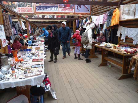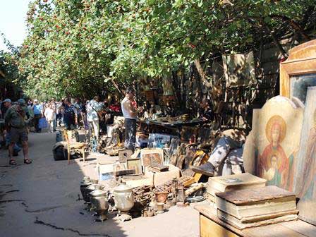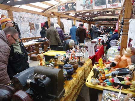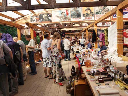 市内イズマイロヴォの「がらくた市」。近頃では、モスクワ土産を買いたいというと、たいていここに案内される。マトリョーシカとか毛皮の帽子とかのお土産はもちろん買えるが、写真を見るとわかる通り、ありとあらゆるガラクタが売り物として置いてある感じだ。 (上・中段:2013年8月,下段:2015年3月撮影)
