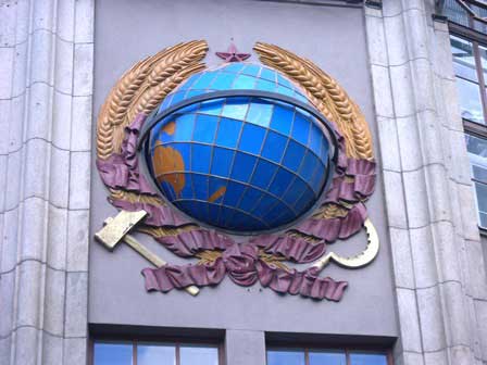 トヴェリ通りにある電報局。かつては大規模の郵便局も兼ねていて、通信関係の用事ではここへ行けば何とかなる感があったけれど、今では電報を使う人もそうもいないだろうし、一度覗いたら携帯電話の売場があったりした。今はどうなっているのか。正面にある地球の絵柄が昔から印象的。 (2016年3月撮影)