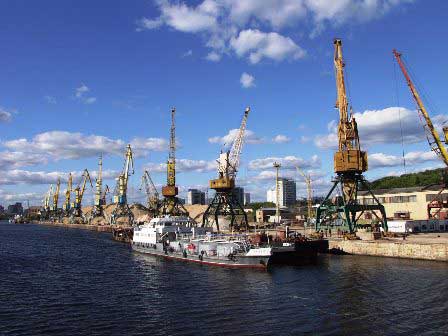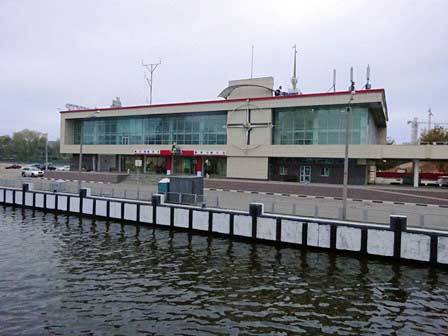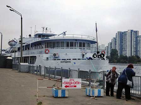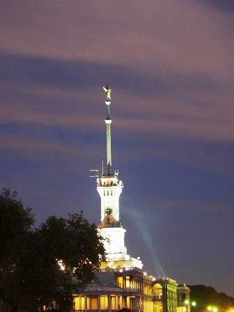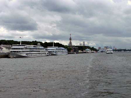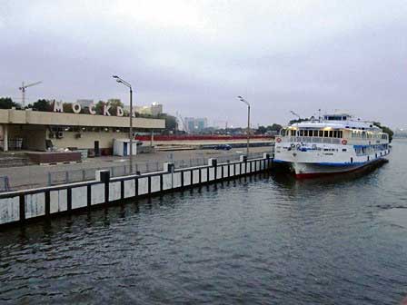 上段は、モスクワ川にある河港のうち北港。バルト海やボルガ川とを結ぶ航路がある。左の写真は、ライトアップされた港のターミナルビル。 (左:2007年8月,中:2005年8月,右:2009年8月撮影)