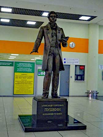モスクワにいくつかある空港のうち国際線が主として発着するシェレメーチェヴォ空港ビル。上段左は1980年のモスクワ・オリンピックに間に合うように建設され、以来、国際線の主ターミナルとして使用された第二ターミナル・ビル。中段左・中は、21世紀になってから、やはり国際線の主ターミナルとして供用開始となったDターミナルの内部。第二の時代には、ヨーロッパに行くトランジット客などからは「とにかく、暗かった」とか言われて評判が悪かった。Dになってからは、他国の空港に見劣りしなくなったと言えるけど、「これじゃ、ロシアじゃないでしょう。」という気がしないでもない。2019年からロシアの主だった空港は著名人の名前が冠されるようになって、ここシェレメーチェヴォ空港は「プーシキン名称」ということになった。それで、空港ビルの中にプーシキン像が立っているというわけ。 (上段左:1997年12月,同右:2020年2月,中段左・中:2011年12月,同右:2016年3月撮影)前のページへ 次のページへ 目次へ戻る 上のシェレメーチェヴォ空港がモスクワ市の北にあるのに対して、南の郊外にあるドモヂェードヴォ空港。私が初めてモスクワに行ったのは1979年暮れのことだが、その時降り立ったのがこの空港だった。当時は、鄙びた国内線用の空港というイメージだったが、現在ではご覧の通り一新されていて、押しも押されもせぬ国際空港。モスクワ〜東京便も発着する。 (下段左:2017年8月,右:2019年3月撮影)