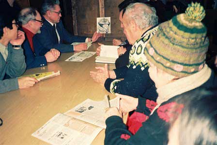 どの新聞も官報みたいのばかりでつまらないと言われたソ連時代にも比較的人気のあった風刺漫画紙「クロコジール」がペレストロイカの時代を迎えて元気になったのは容易に想像できる。写真はその編集会議。 (1990年12月撮影)