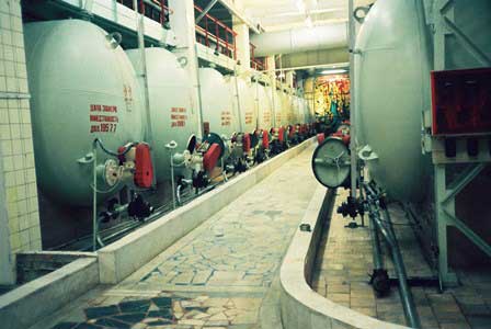 ロシアの人達は何かのお祝いのときにはよくシャンペンを開ける。モスクワでは「ソビエツコエ」などのやや甘目のシャンペンが製造・販売されている。写真はその工場。 (1990年12月撮影)前のページへ 次のページへ 目次へ戻る