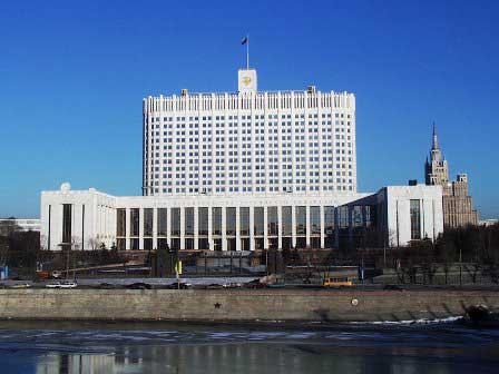 エリツィンによる砲撃ですっかり有名になった建物。ソ連時代にはロシア社会主義連邦の閣僚会議が置かれていた。その後はロシア連邦議会が使用していた。 (1999年12月撮影)