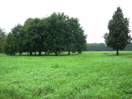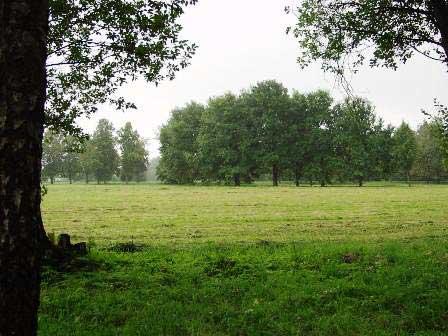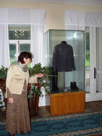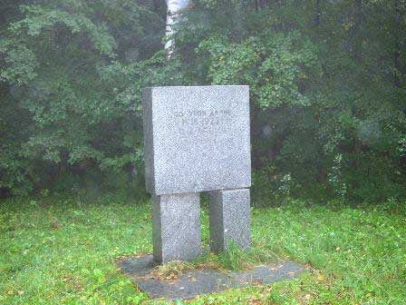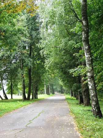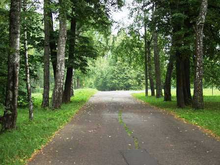 舘は非常に広い敷地の中にあり、敷地の大半は原っぱや果樹とか白樺の木立ちが占める。林の脇にはレーニンがここを訪れた時にこの小径を逍遙したという石碑があったが、長年の雨風にさらされて碑文はほとんど消えかかっていた。 (2009年8月撮影)
