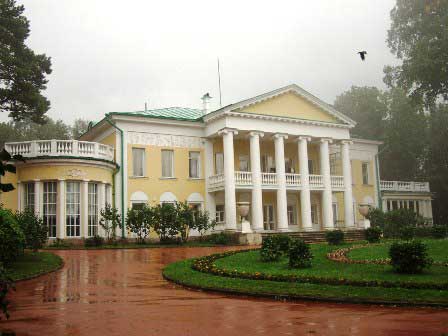 モスクワの南10kmほどのところにあるかつてのシナイーダ・モロゾワ未亡人の屋敷。革命後の1918年からレーニンの別荘となり、医師の勧めで彼がモスクワを離れた1923年5月から翌年1月の死去までの最晩年を彼はここで過ごした。写真はレーニンが住んだ館。 (2009年8月撮影)