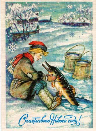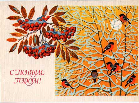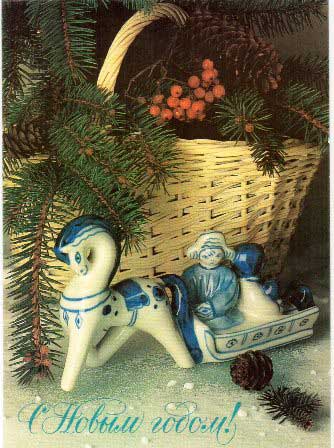しかし、年賀はがきの図柄は写真よりも絵画のものが多いようだった。左のは日本の年賀状としても違和感がない。 (左は1988年発行、右は1992年発行)