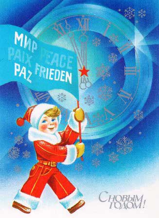 ソ連時代、街角や建物の内部に掲げられるスローガンには世界の平和を訴えるものも少なくなかった。一方でチェコやアフガンに軍隊を出しながらのことであるから、あまり説得力のあるものではなかったが、もちろんこうした年賀葉書にもその種のものがあった。 (1989年発行)