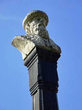 その家のすぐ近くに建てられている彼の記念碑。 (左及び中:2007年8月,右:2018年9月撮影)