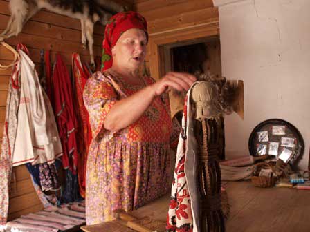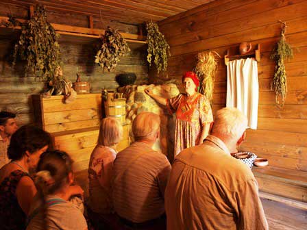 町の背後にある小さな丘の中腹に、かつてのロシアの農民の生活の様子を展示している所がある。日常生活に使う道具などが雑然と並べられていた。博物館とかこういう場所に来るといつも感じるのだが、ロシア人観光客達はまるで学校の生徒のようにガイドや学芸員の説明を行儀良く聞くのでほんとうに感心する。 (上:2014年7月,下:2007年8月撮影)