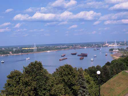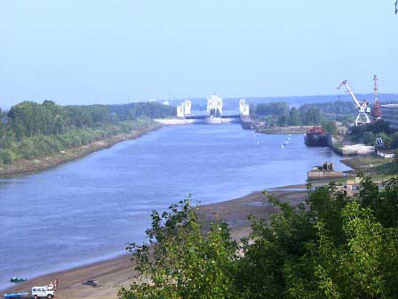 河港のすぐそばにあるヴォルガ河の水門。 (2007年8月撮影)