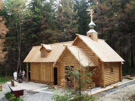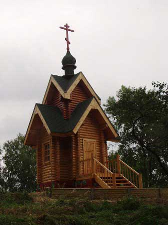ゴロジェッツから30km近く行ったところにある林の中の泉。聖なる泉だそうで、小さなお堂が建てられていた。 (2007年8月撮影)