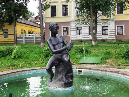 そのあたりで見かけた噴水。男の子がつかんでいる魚の口から水が出るデザイン。 (2007年8月撮影)