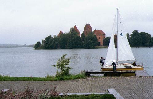 ビリニュス郊外のトラカイはかつてリトアニアの首都だったこともあるという古い町。そこのガリベ湖という小さな湖に今から500年ほど前に立てられたというトラカイ城がある。中は博物館になっていて、その展示品は、かつてリトアニアがポーランドやロシアに対抗できる力を持った大国であったことをうかがわせていた。 (1987年8月撮影)