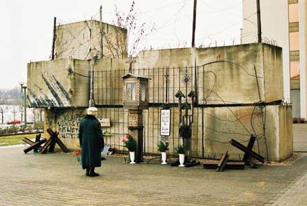 1991年1月にこの付近でソ連政府軍部隊と市民とが対峙し、その時作られたバリケードの一部が現在も保存さている。