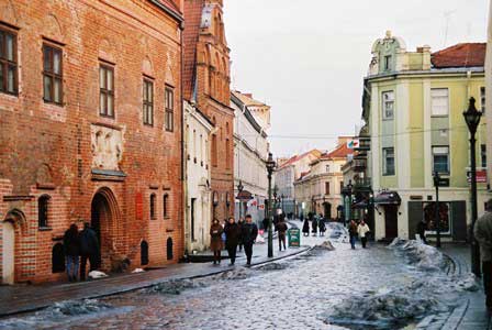古都らしいたたずまいを見せるカウナス市の通りの表情。 (1998年12月撮影)