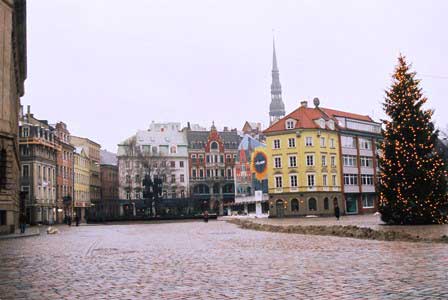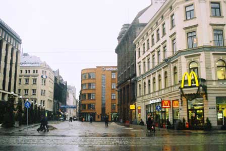 リガの街角の表情。昔から変わったものと変わらないものとがある。 (1998年12月撮影)