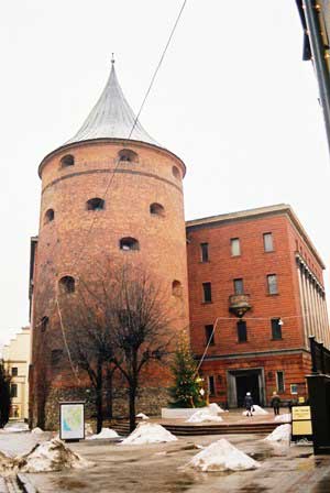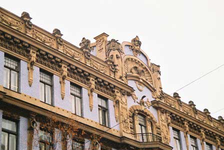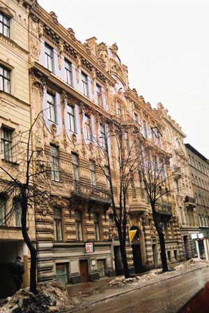 ある本によると、19世紀後半から今世紀はじめにかけてドイツに表題のような名前で呼ばれる新様式の建築運動が起こり、そのスタイルの建物がリガに多くあるという。写真は映画監督として有名なエイゼンシュテインの父の作品と言われる建築物。 (1998年12月撮影)